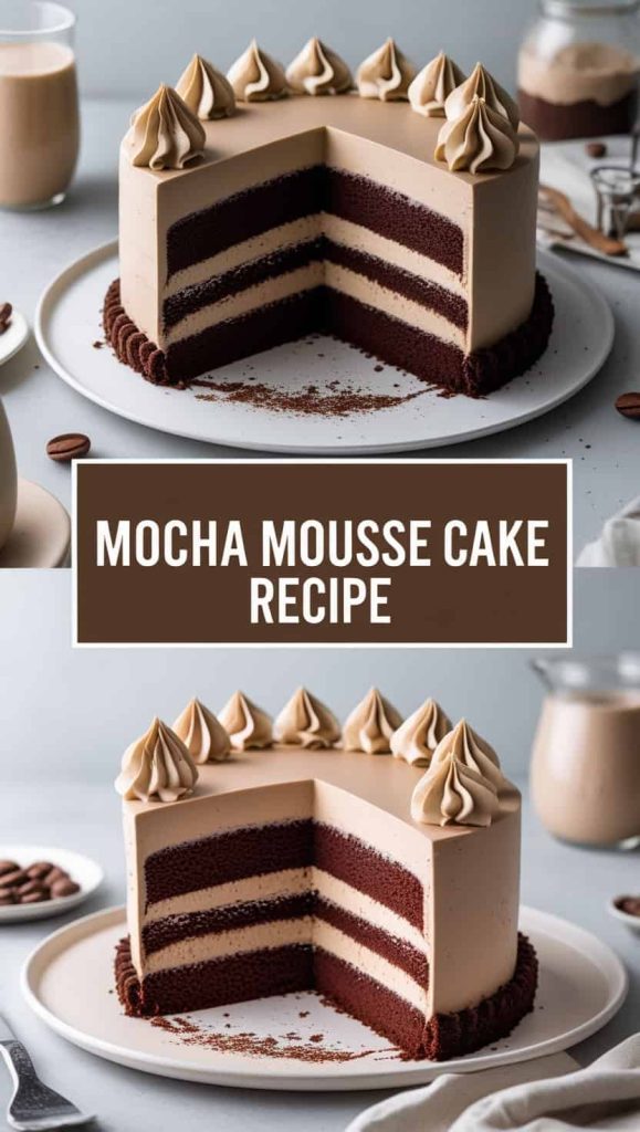 This cake combines rich espresso flavor with silky chocolate mousse and whipped cream.