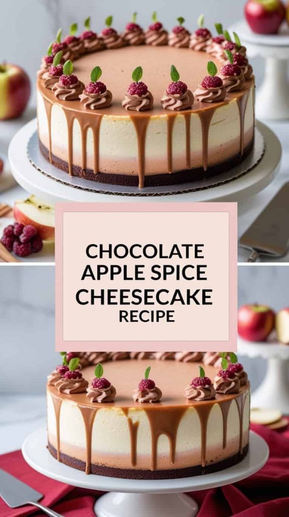 Warm apple spice paired with rich chocolate creates a comforting fall-inspired cheesecake. The apple notes balance the chocolate for a cozy flavor profile.