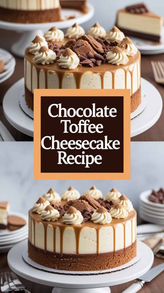 Crunchy toffee bits mixed into chocolate cheesecake bring sweetness and texture. This dessert delivers a rich combination of caramelized sugar and chocolate.