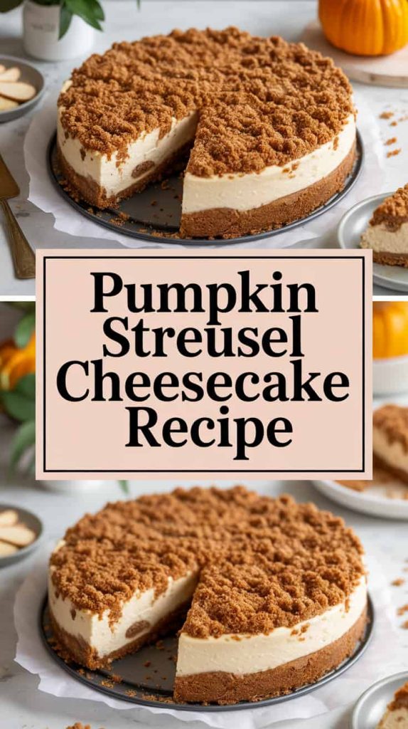 This cheesecake features creamy pumpkin filling topped with buttery cinnamon streusel for a warm holiday flavor. The crunchy topping makes every slice extra comforting.