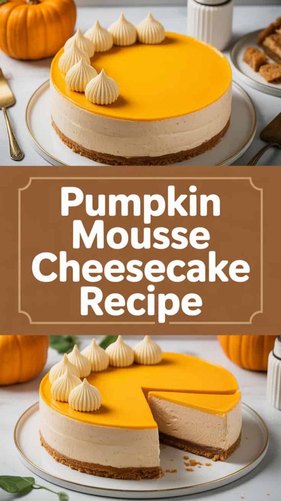 This cheesecake blends a creamy baked layer with fluffy pumpkin mousse on top for a light and airy holiday dessert. It’s festive but not too heavy.