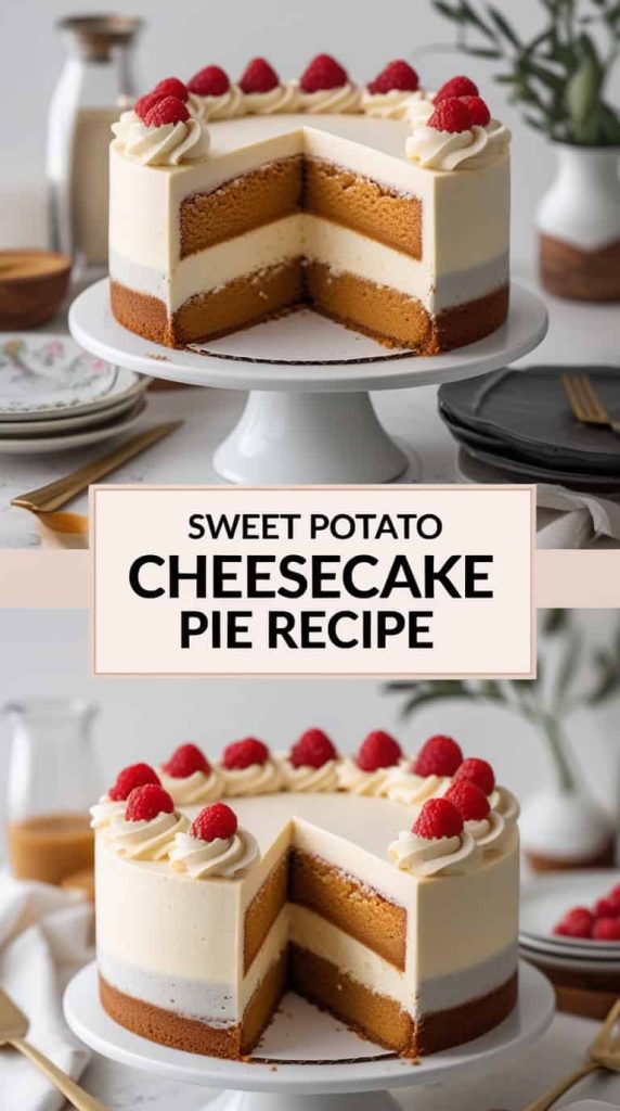 This recipe blends creamy cheesecake with smooth sweet potato pie filling for a down-to-earth holiday flavor. It’s cozy, soft, and great for fall dinners.