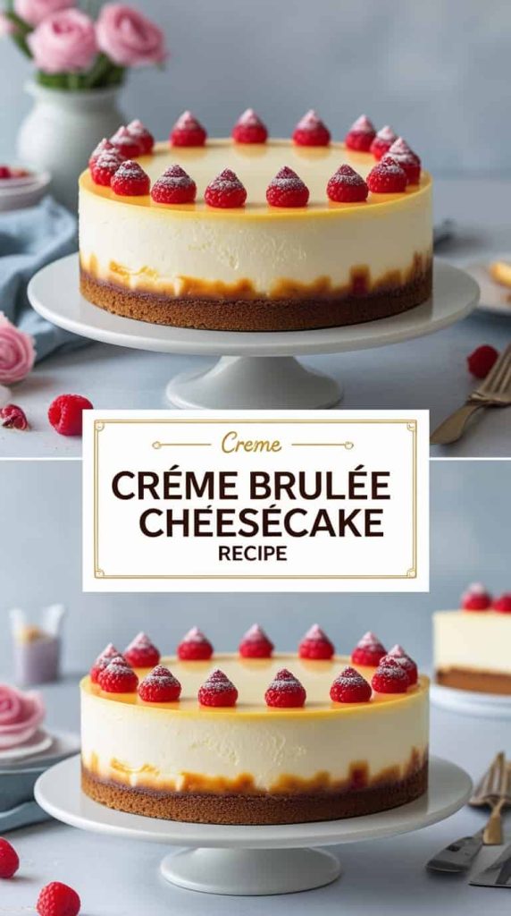 This cheesecake brings the signature caramelized sugar crunch of crème brûlée to a velvety cheesecake base. The silky custard-like texture makes it an instant showstopper.