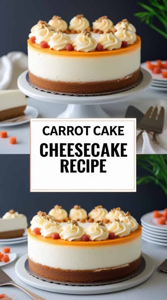 This cheesecake layers spiced carrot cake with smooth cheesecake for a cozy, bakery-style treat. It brings together nutmeg, cinnamon, and creamy filling.