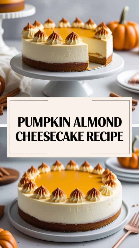This cheesecake combines smooth pumpkin filling with subtle almond flavor and nutty texture. The almond notes add depth without overpowering the pumpkin.
