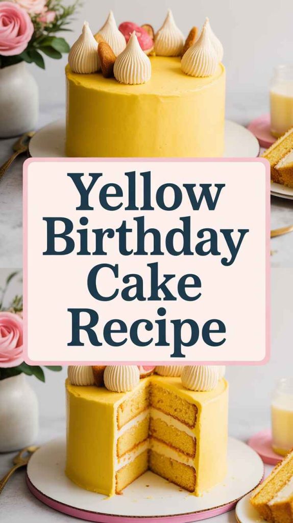 Yellow birthday cake delivers rich flavor from egg yolks and butter. The crumb feels tender and classic.