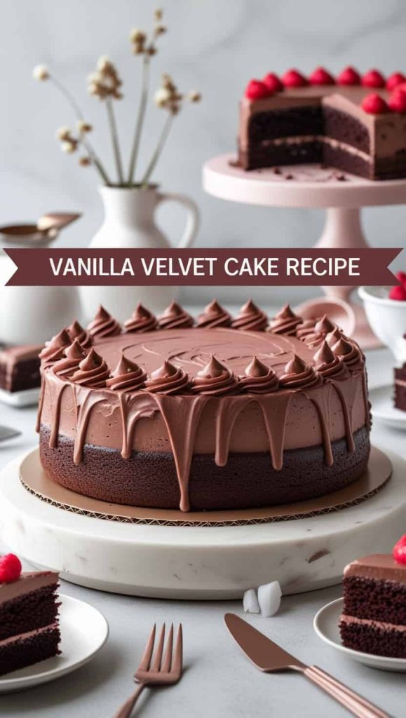 Vanilla velvet cake offers a luxurious crumb with a delicate flavor, making it perfect for weddings or special occasions.