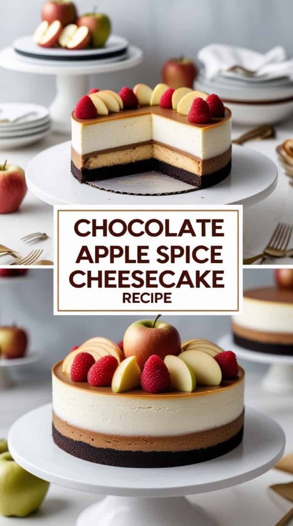This cheesecake combines chocolate richness with warm apple spice for a dessert that feels seasonal yet unexpected. Cinnamon-spiced apples cut through the chocolate and add natural sweetness.