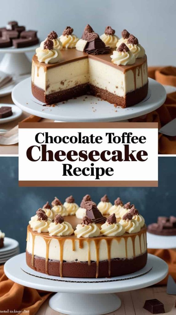 This cheesecake focuses on texture, combining creamy chocolate filling with crunchy toffee bits throughout. Every slice delivers smooth, crisp, and rich elements in one bite.