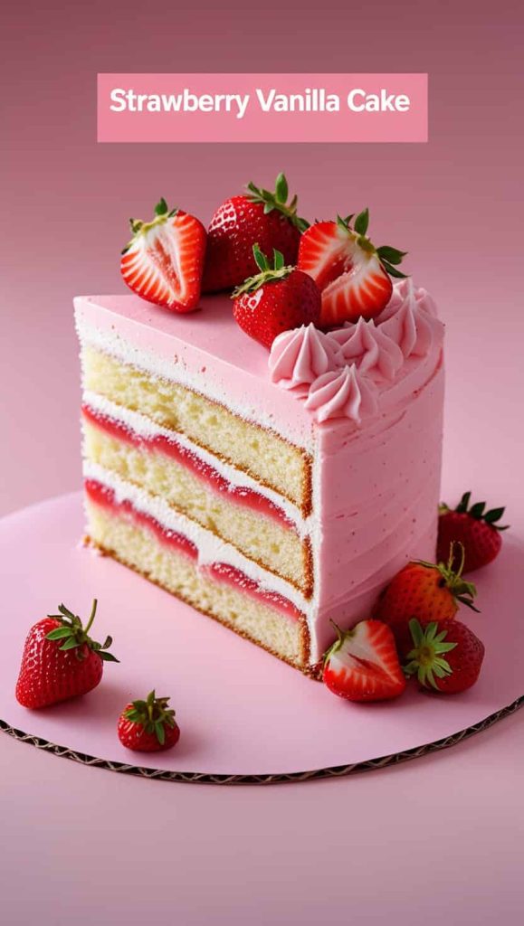 4. The Best Strawberry Vanilla Cake – Moist & Flavorful!
