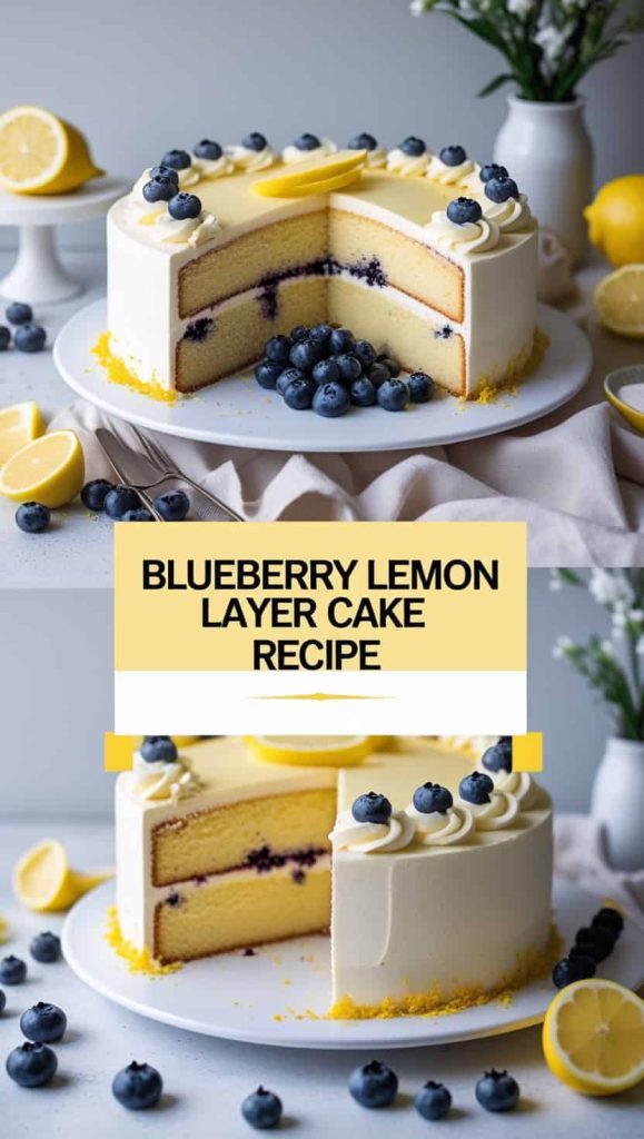 Toss blueberries in a bit of flour to prevent sinking. Bake in three 8-inch pans, then cool completely. Frost with lemon cream cheese frosting and garnish with lemon slices or extra berries.