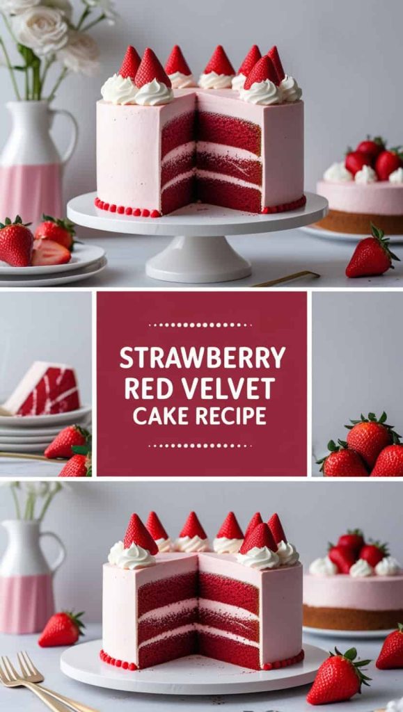 Bake the strawberry-red velvet batter in two 8-inch pans. Cool, frost with cream cheese frosting, and top with sliced strawberries for extra flair.