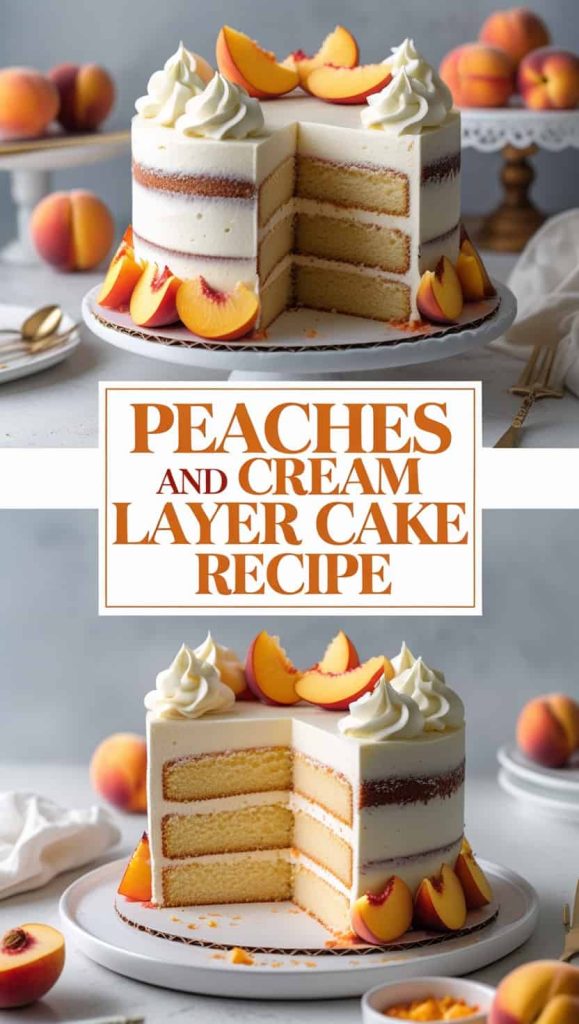 Fresh peaches and fluffy whipped cream give this cake a soft, summery elegance. It’s simple, juicy, and beautifully light.