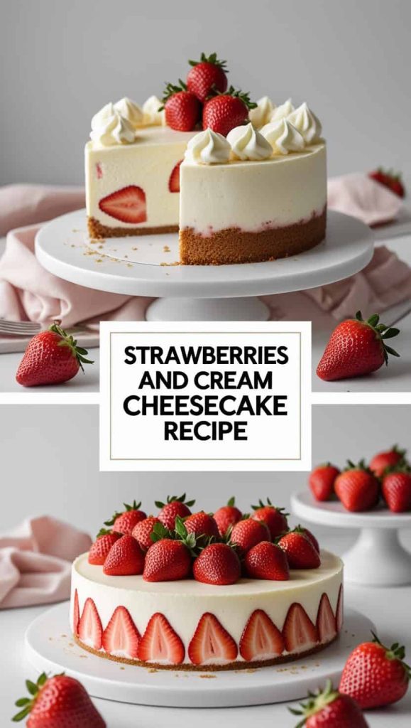 6. Strawberries and Cream Cheesecake Cake Recipe
