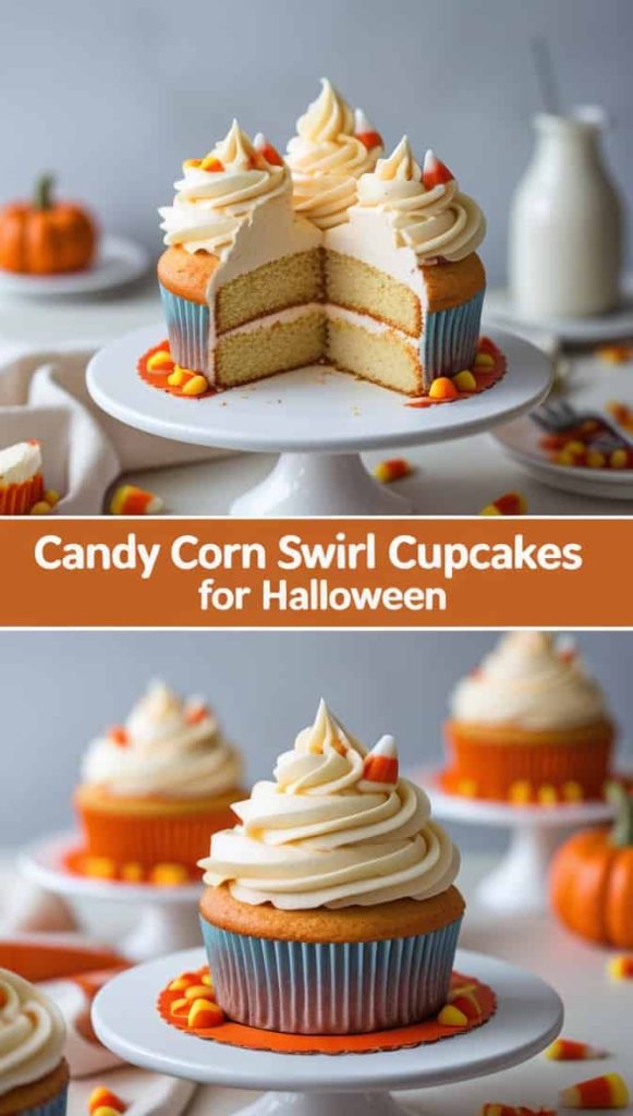 7. Candy Corn Swirl Cupcakes for Halloween