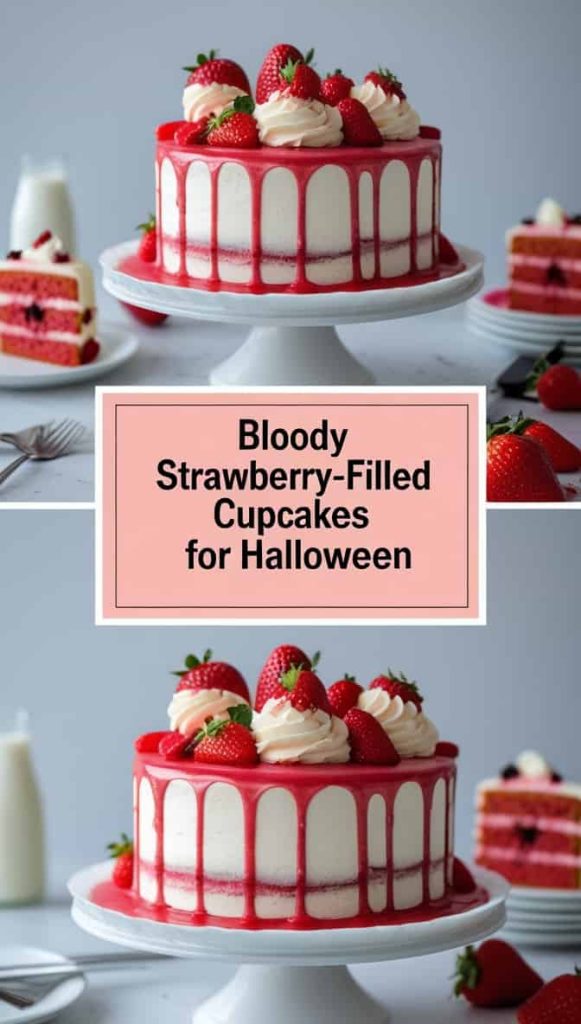 8. Bloody Strawberry-Filled Cupcakes for Halloween