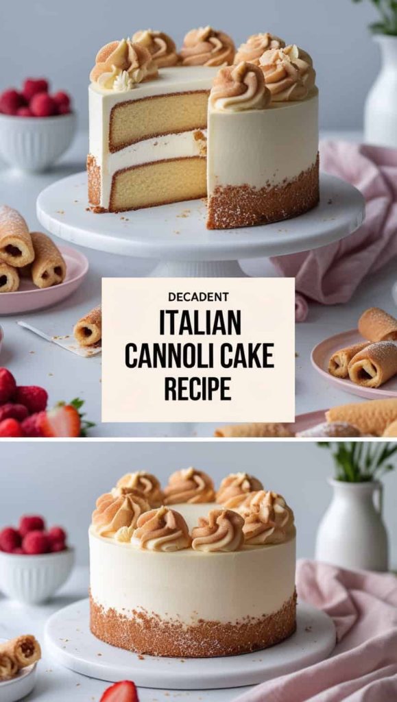 Creamy cannoli filling meets moist vanilla cake for a simple yet flavor-packed Italian favorite.