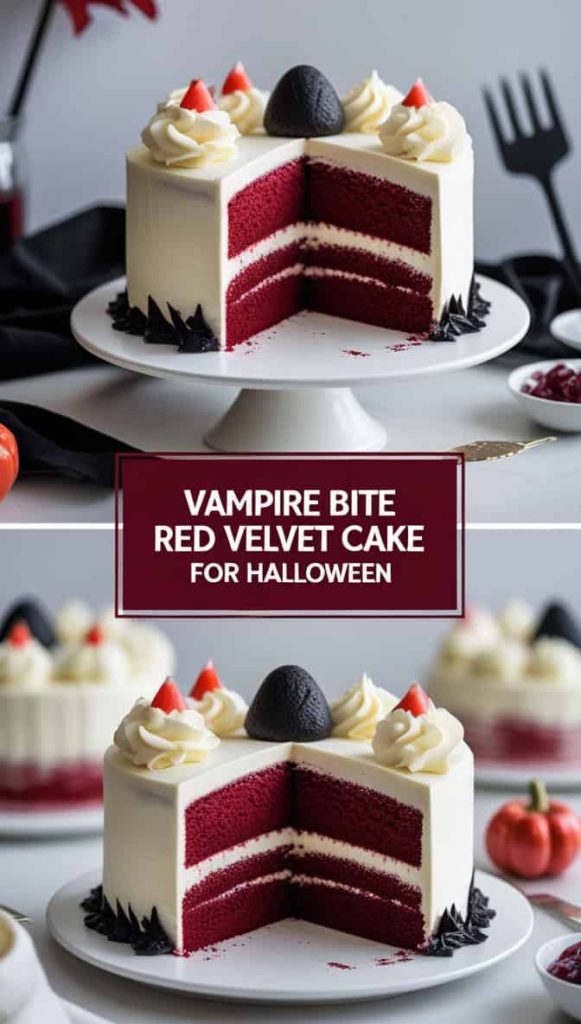 A Vampire Bite Cake combines red velvet richness with dramatic “blood” syrup for a thrilling bite.