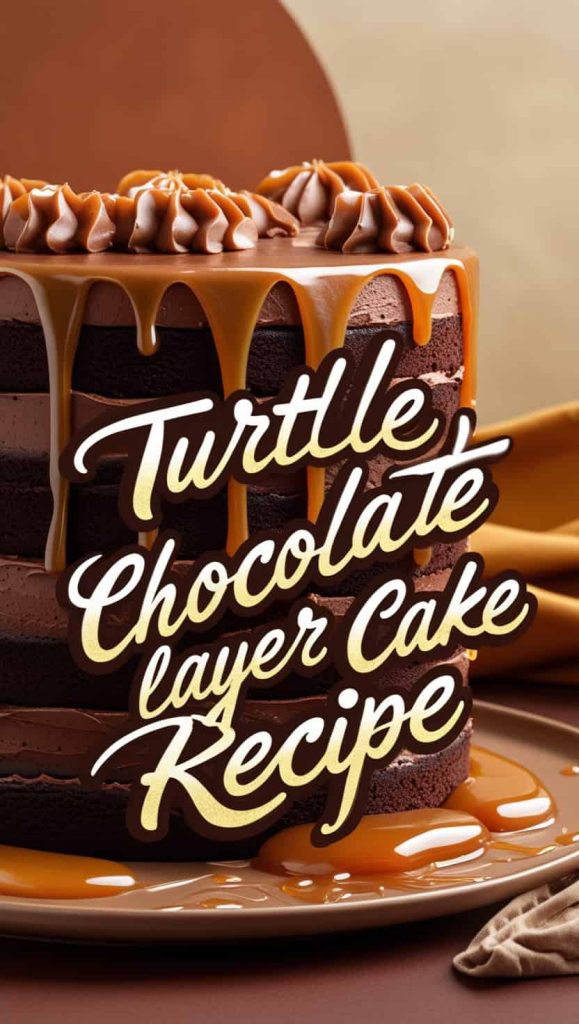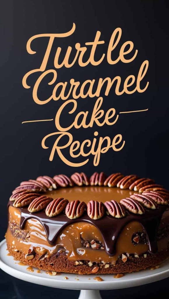 Rich chocolate cake meets gooey caramel, chopped pecans, and silky ganache—this cake is exactly what you’d expect from a turtle candy-inspired dessert.