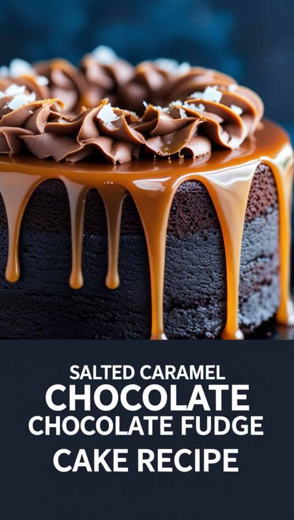 Dark chocolate cake layers stacked with silky fudge frosting and rich salted caramel—this is a showstopper for serious dessert lovers.
