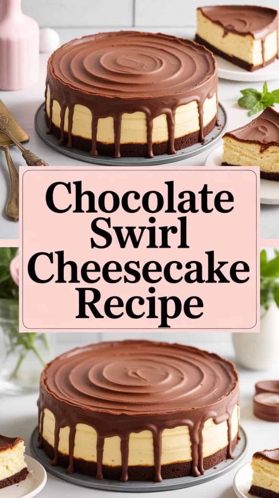A chocolate swirl brings a rich, marbled touch to classic creamy cheesecake, giving every slice a balanced mix of cocoa and vanilla flavor.