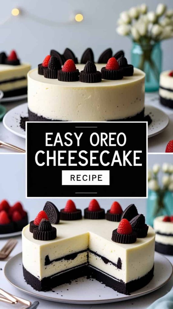 Oreo cheesecake brings cookies-and-cream comfort with a crunchy chocolate crust and a creamy filling loaded with crushed cookies.