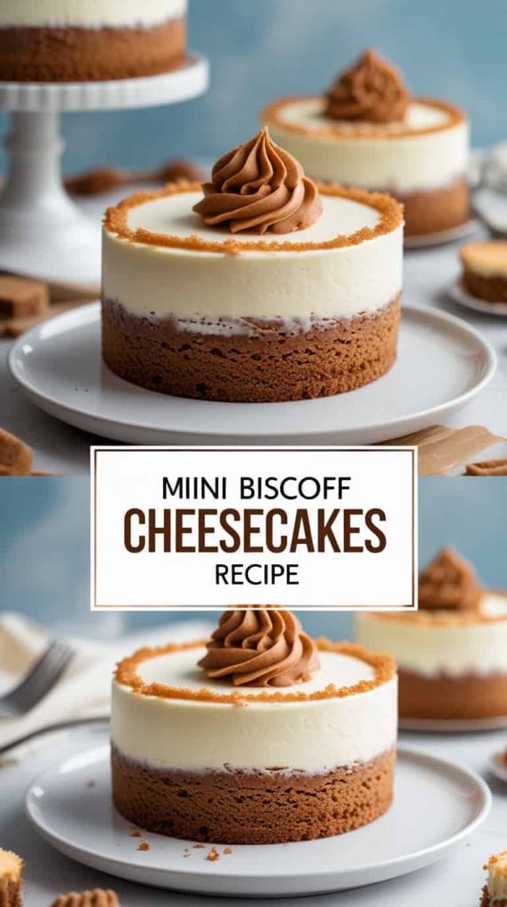Mini Biscoff cheesecakes offer warm spiced cookie flavor with a creamy filling, making them perfect for parties or bite-sized dessert trays.