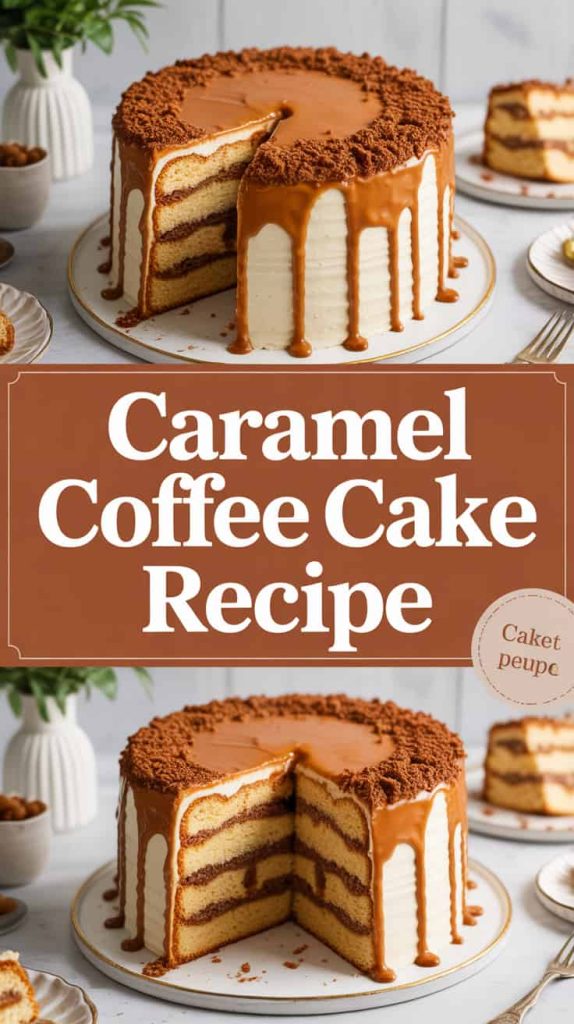 Caramel coffee cake combines warm coffee notes with sweet caramel swirls for a tender crumb.